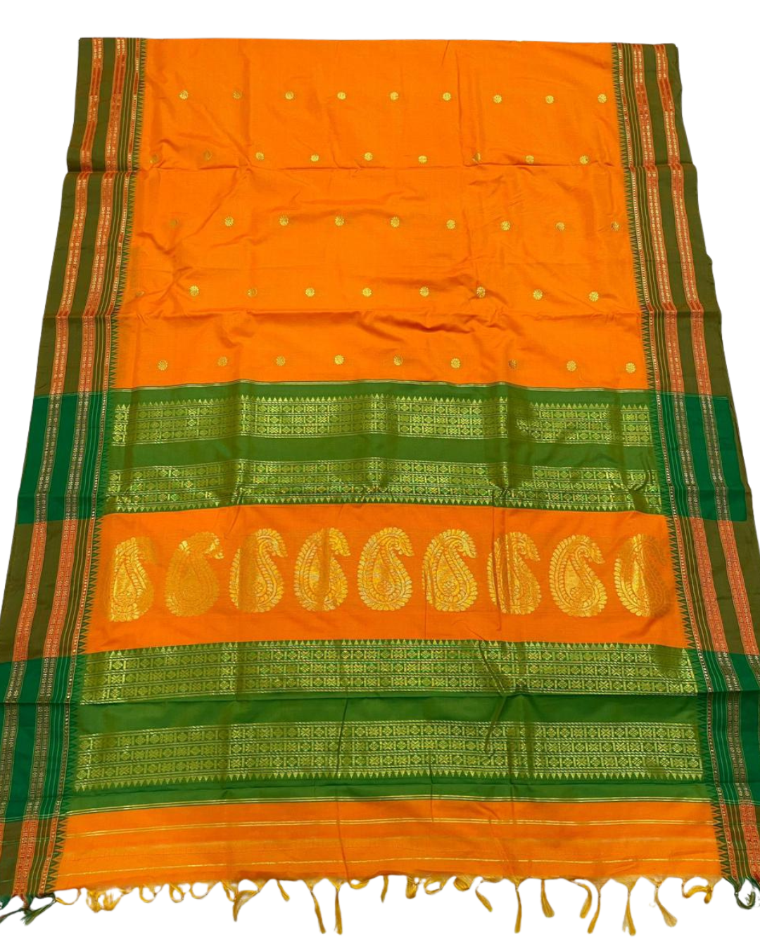 • Bright Orange with Green Narayanpeth Border Saree–South Indian Wedding Special